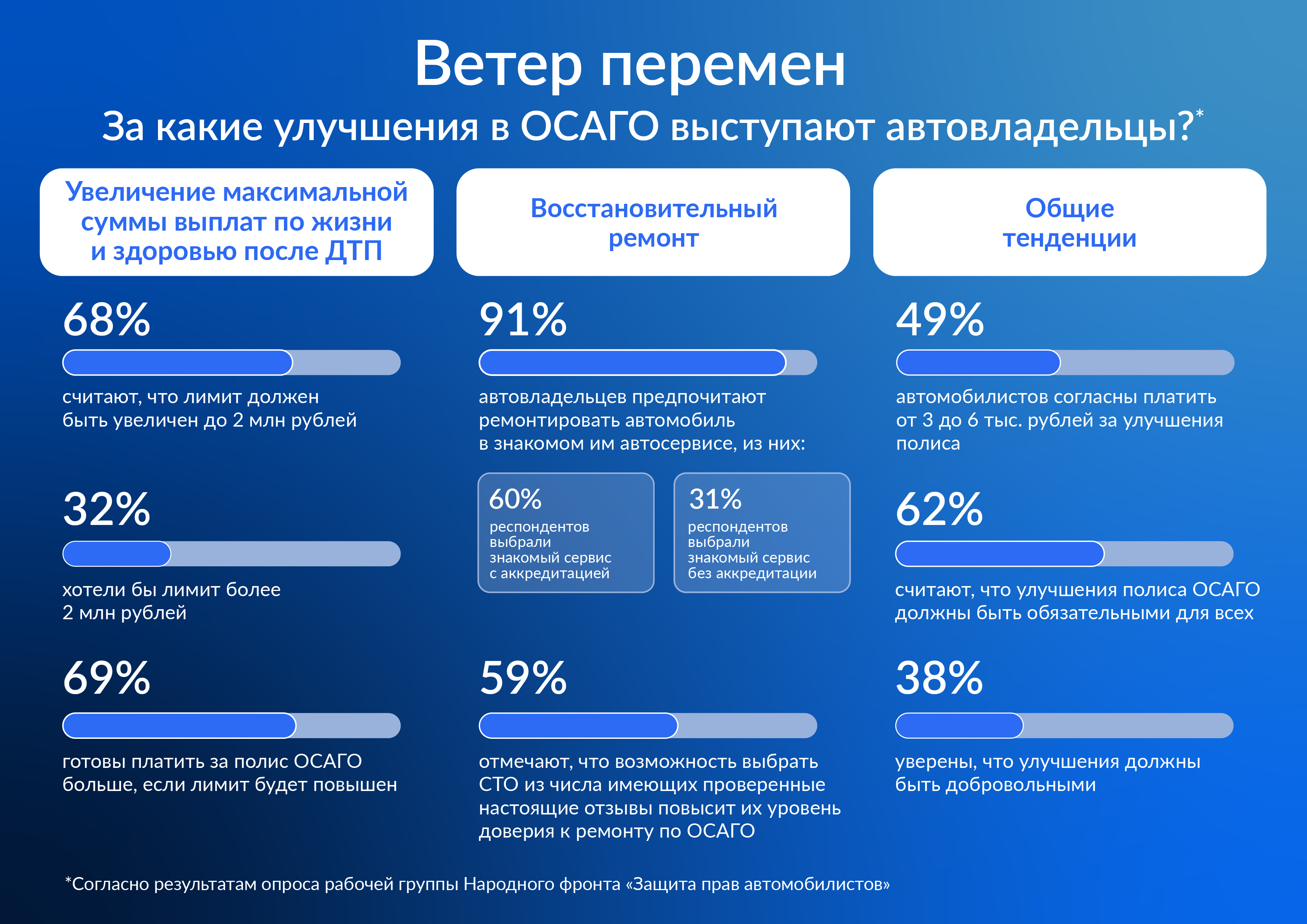 За какие улучшения ОСАГО выступают российские автовладельцы, выяснила рабочая группа Народного фронта «Защита прав автомобилистов».